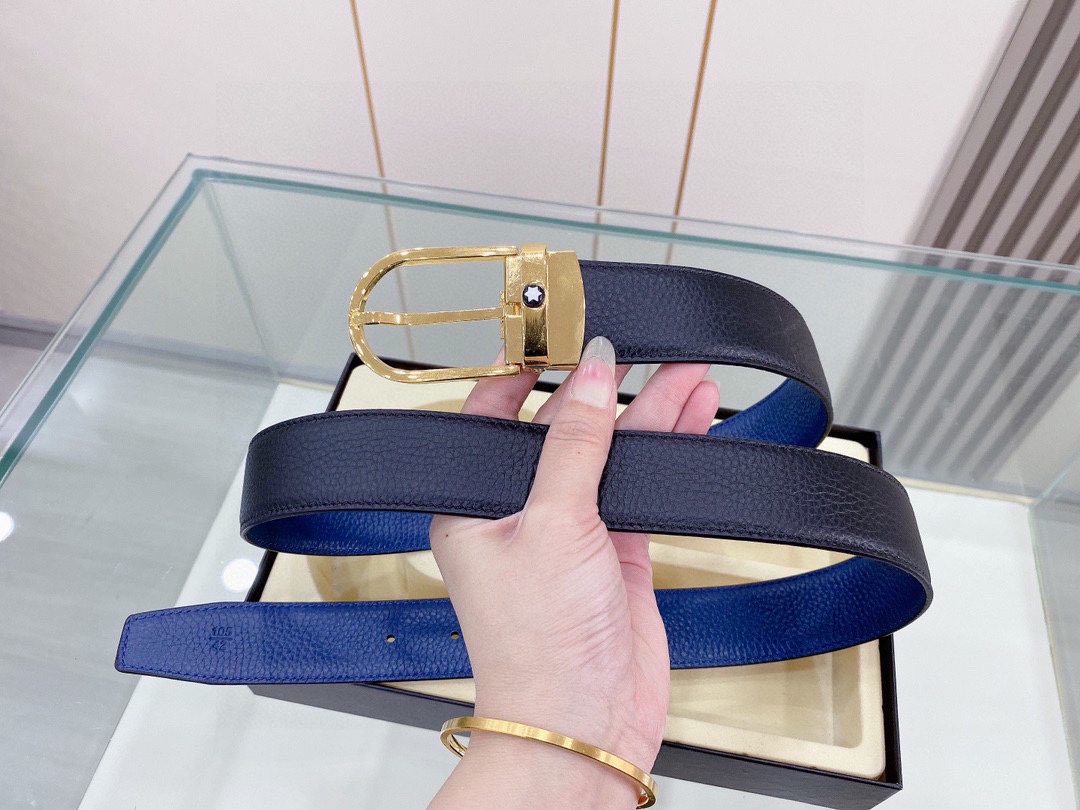 P240 万宝龙的品牌代表着高雅恒久的生活精品,反映着今日社会对文化、设计、传统和优秀工艺的追求和礼赞,而优雅的六角白星标志已成为卓越品质与完美工艺的代表。产品选用:进口材料搭配精品五金扣;皮带宽度35mm。双面可用,黑色 蓝色。